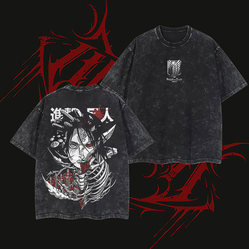 • Attack on Titan Eren Yeager Vintage Washed Oversize T-Shirt