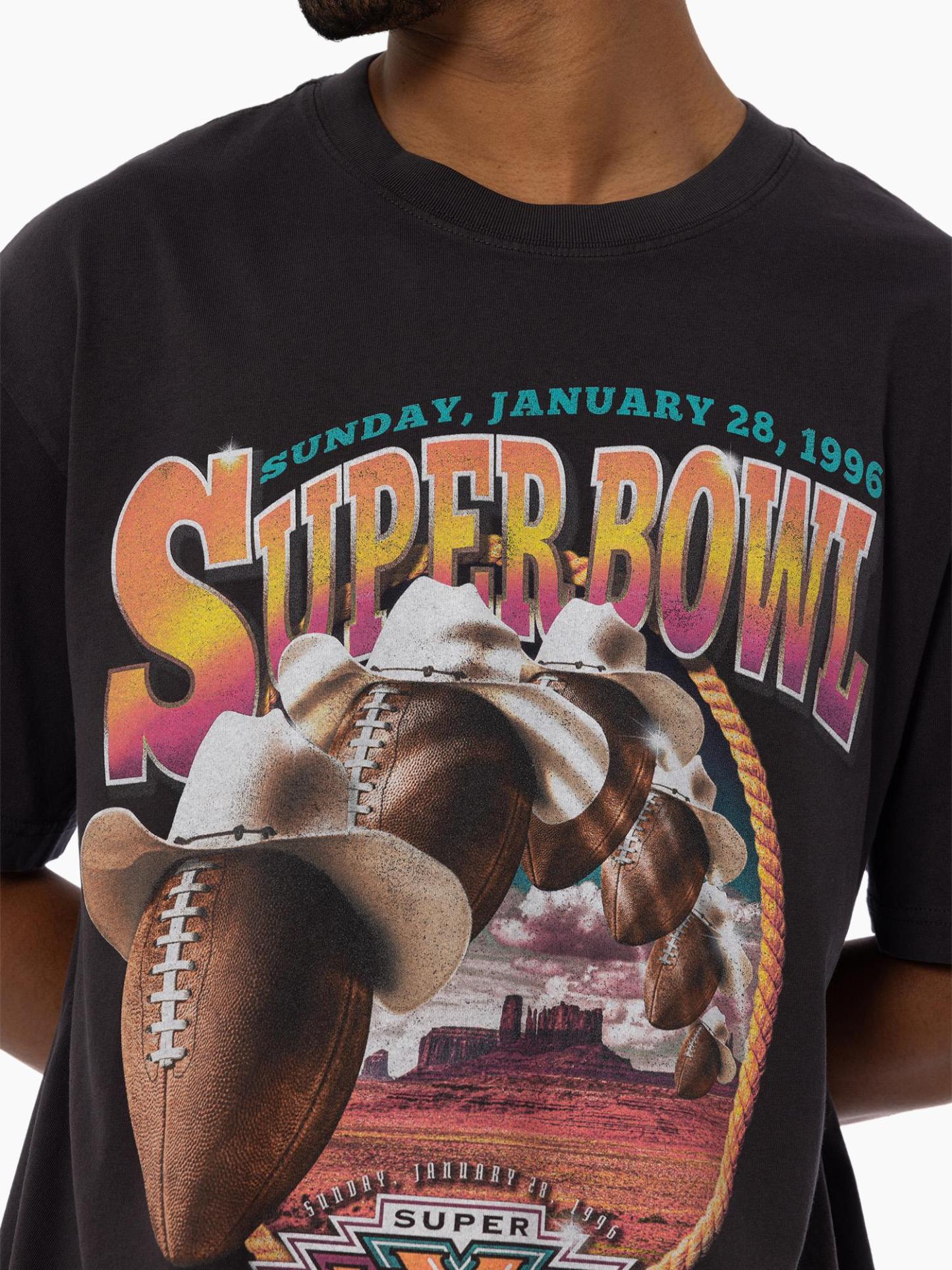 Celebrate the iconic 1996 Arizona Super Bowl with this vintage-inspired tee. Featuring enzyme-washed cotton and bold, distressed graphics, this piece blends retro vibes with modern comfort. Relive the excitement of Super Bowl XXX and make a timeless statement in faded black. A must-have for football fans and style enthusiasts alike!