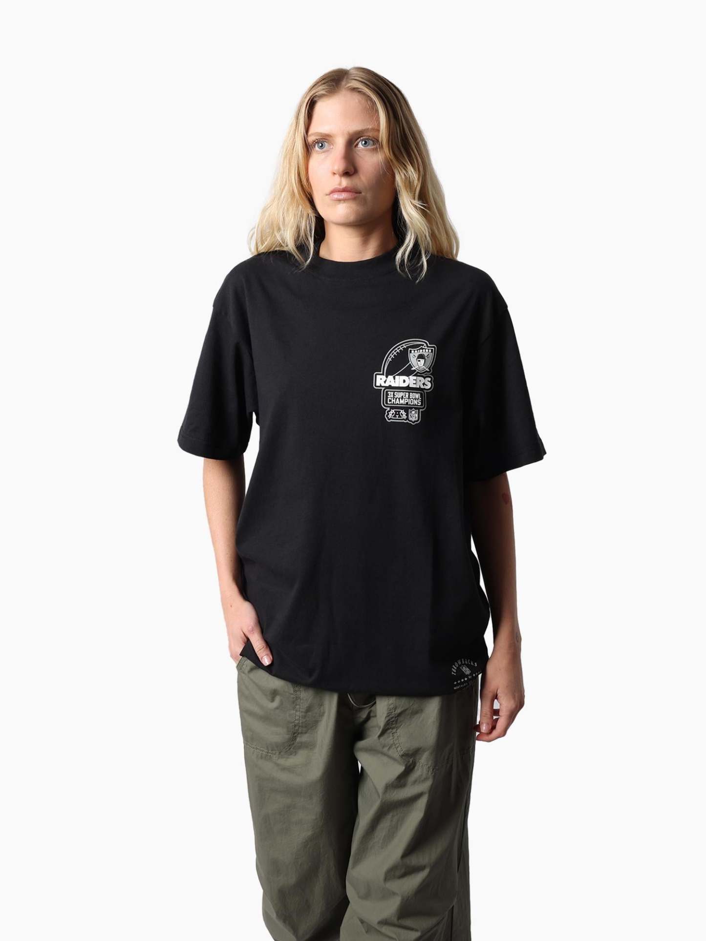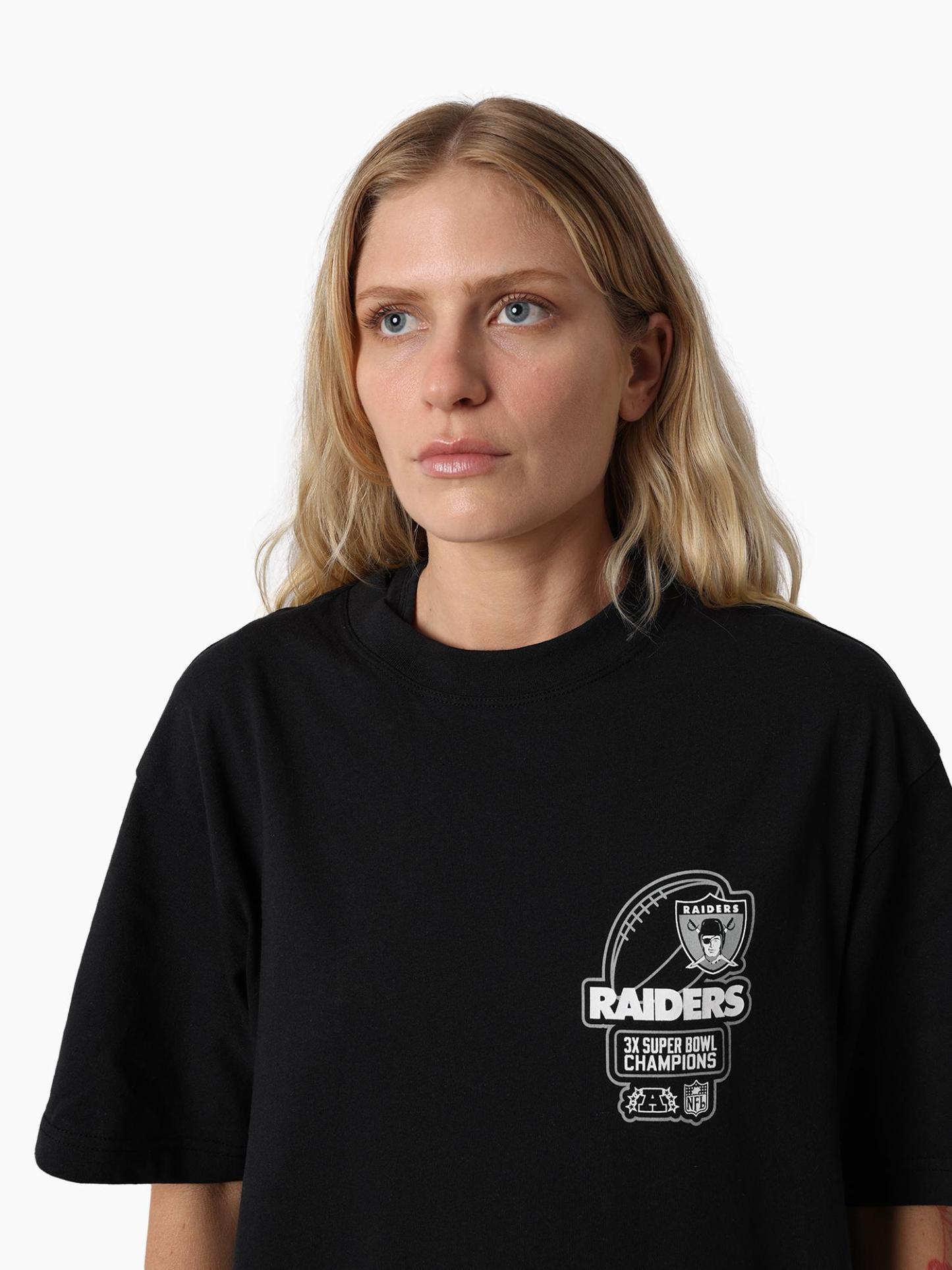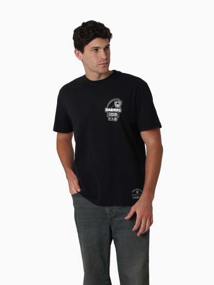 Stand out with the Raiders Golden tee. Built with a vintage fit and enzyme wash for a rugged edge, this piece is finished with bold screen printed graphics that salute the Silver & Black. A must-have for fans who want to represent Raider Nation with authentic retro energy. The Raiders NFL franchise has played between Oakland and Los Angeles since 1960 before relocating to Las Vegas in January '20. The iconic logo of a pirate or 'raider' wearing a helmet has been stood as the team logo & colours since 1964.