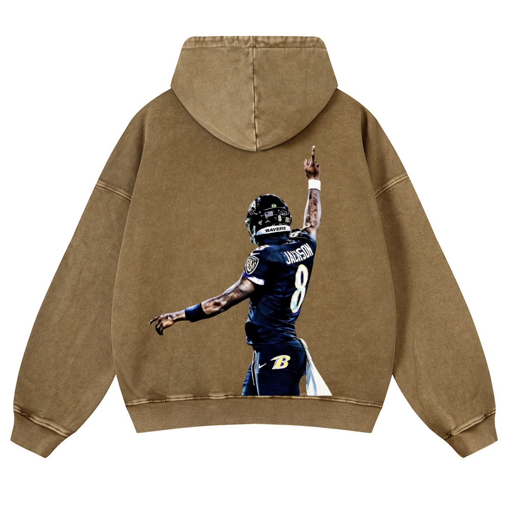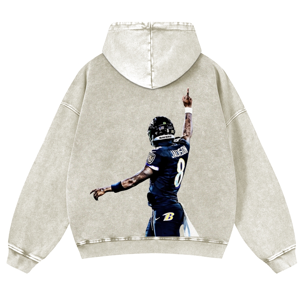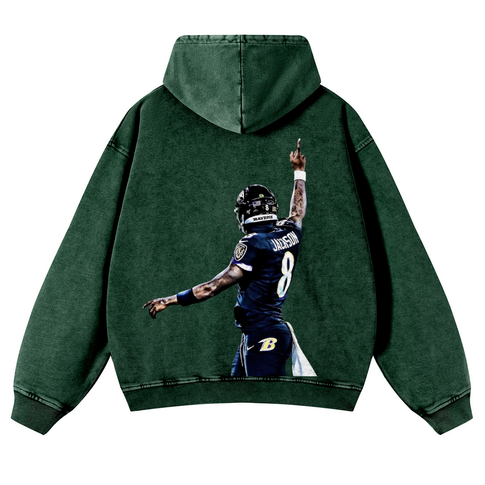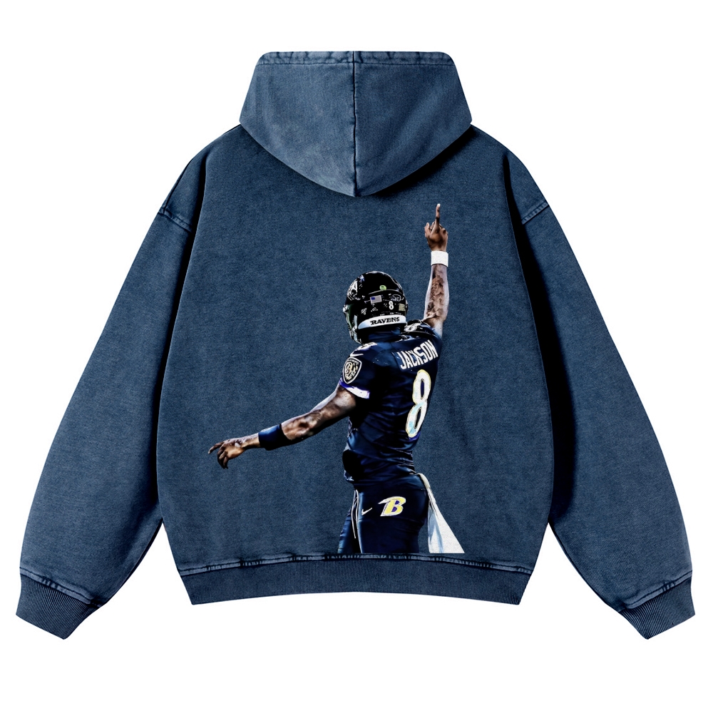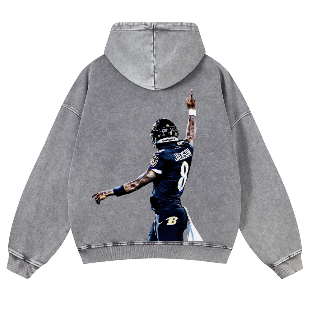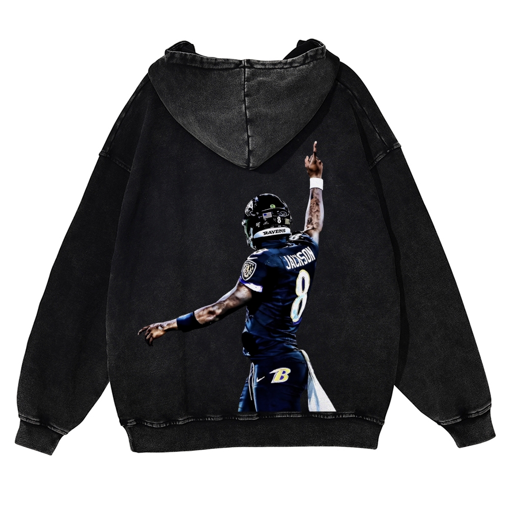 Casual Washed Hoodie|RAVENS Lamar Jackson