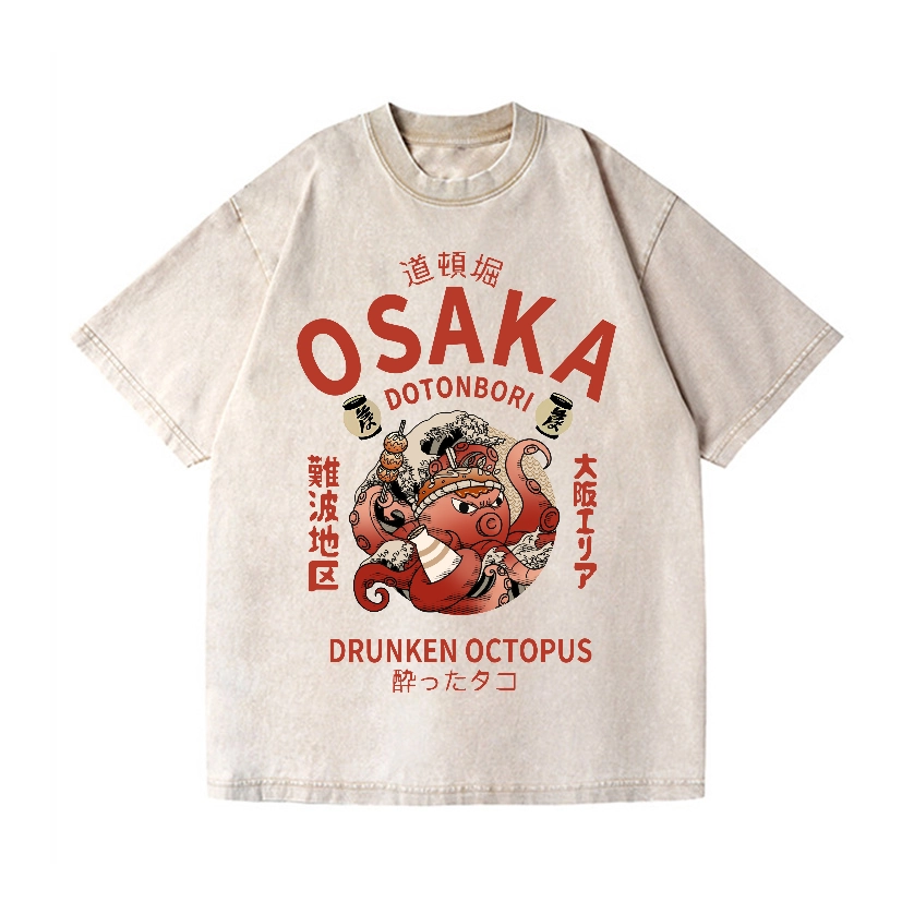 OSAKA DOTONBORI DRUNKEN OCTOPUS VINTAGE WASH JAPANESE DESIGN T-SHIRT
