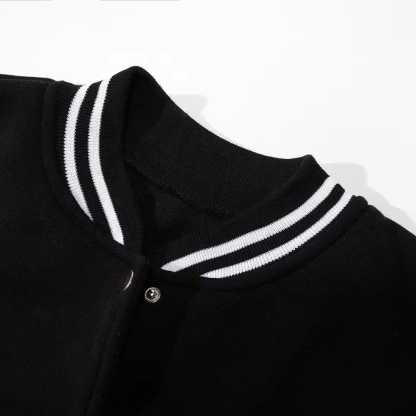 🧢 Classic Baseball Collar: Timeless varsity style with a streetwear twist.