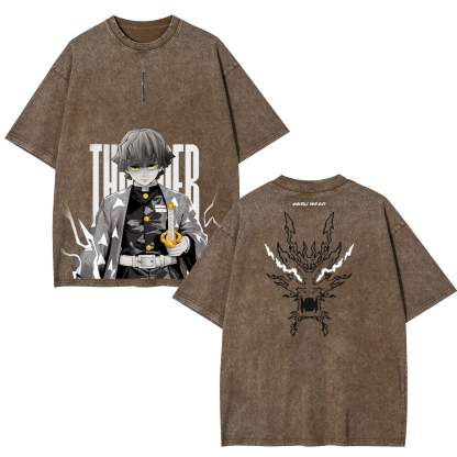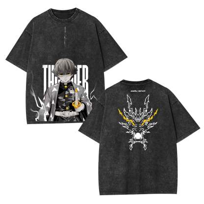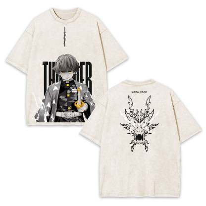 ZENITSU DEMON SLAYER UNISEX WASHED T-SHIRT-[DS]