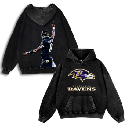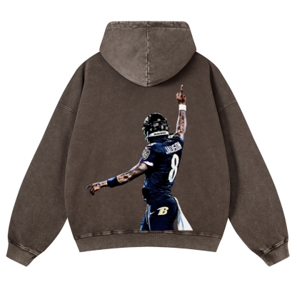 Casual Washed Hoodie|RAVENS Lamar Jackson