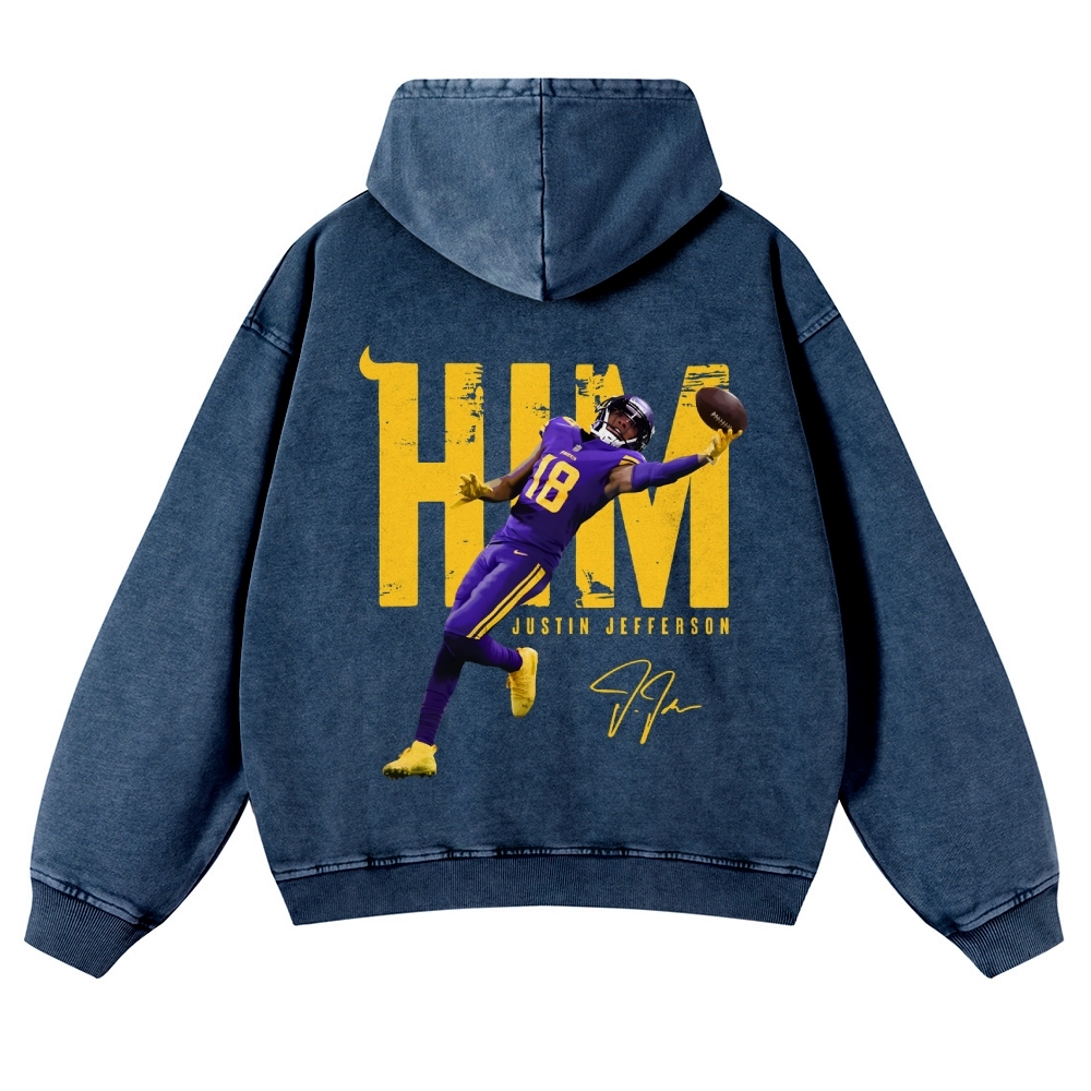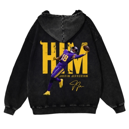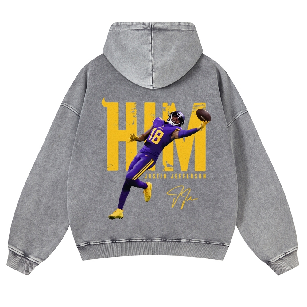 Casual Washed Hoodie Justin Jefferson Minnesota Vikings
