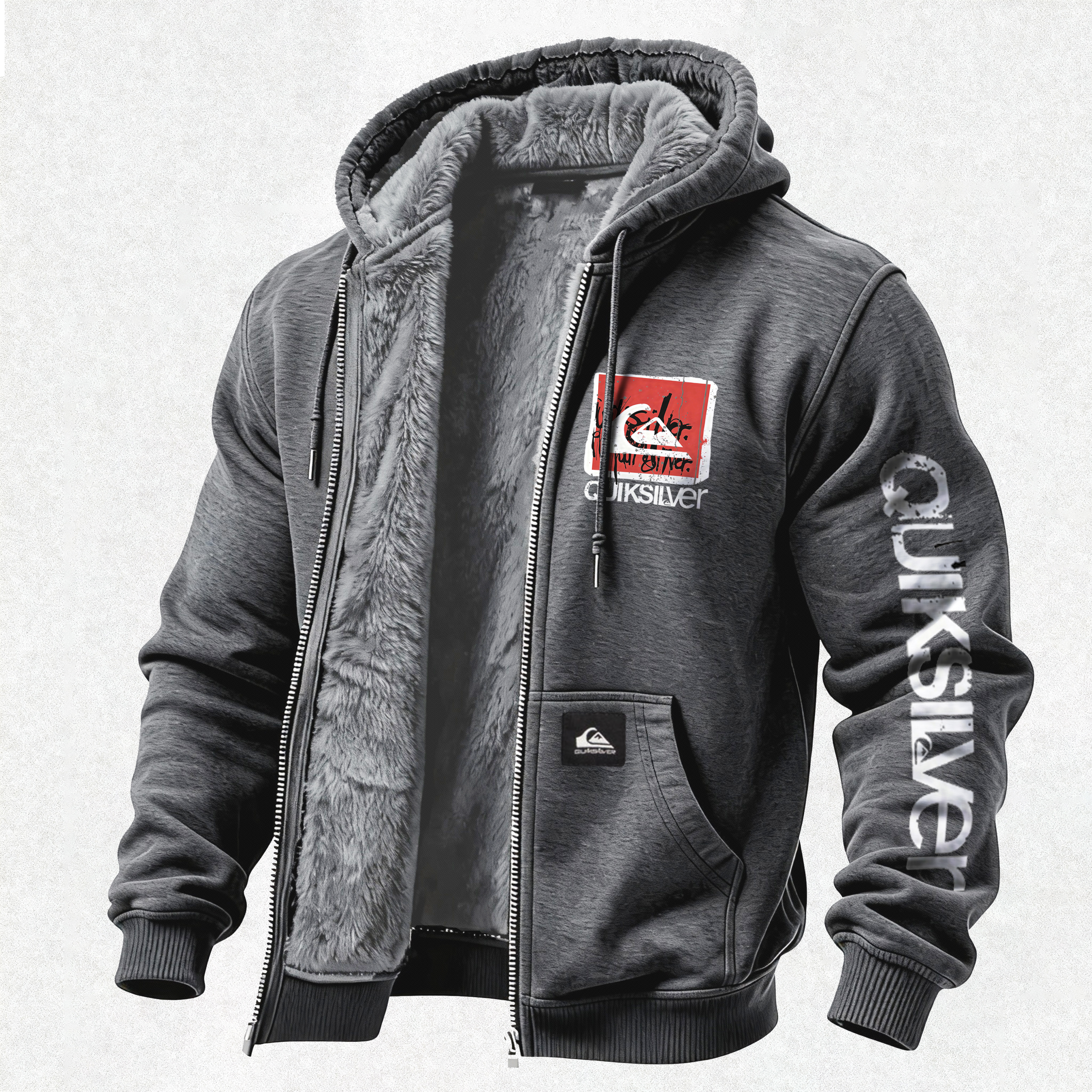 Quiksilver Printed Zippered Hooded Fleece Cardigan