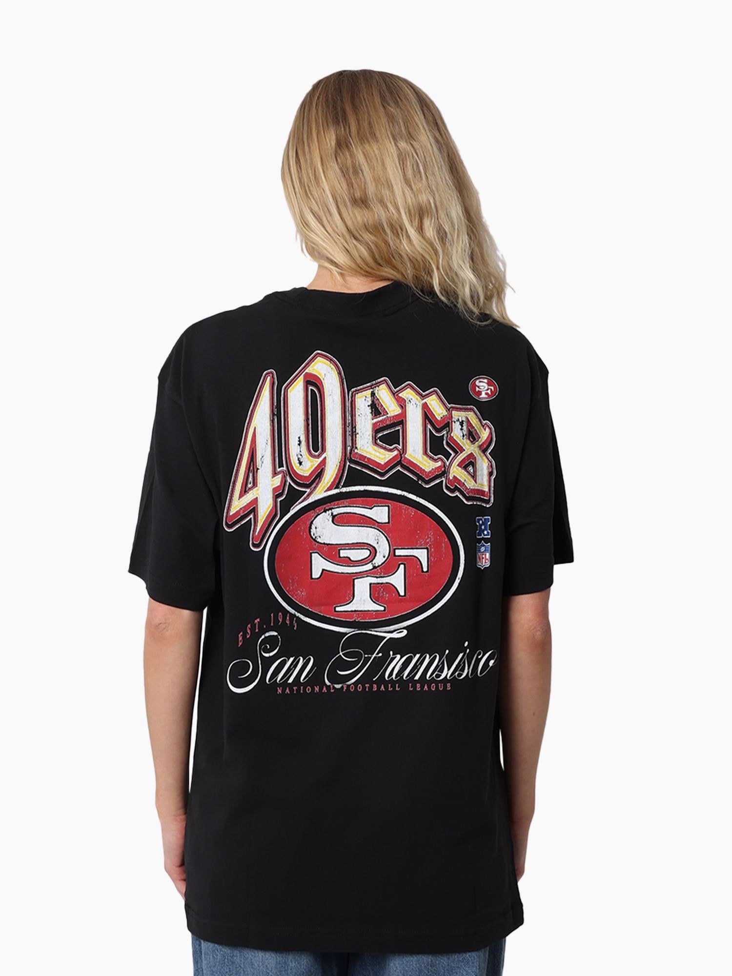 Own a bold vintage look with the Gothic Team Tee. Designed in a vintage fit with an enzyme wash for a worn-in feel, it features digital print graphics with heavy distressing and striking gothic fonts. Finished with a printed hem label, this tee delivers classic comfort with an edgy twist for true fans. Based in the Bay Area, the 49ers were founded in '46 before joining the NFL in '49. The name comes from the men who arrived in Northern California during the 1849 Gold Rush. The 49ers are known as "The Team of the '80's" due to 4 Super Bowl victories.