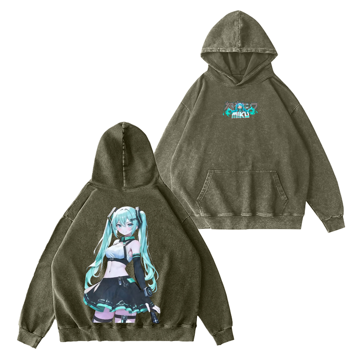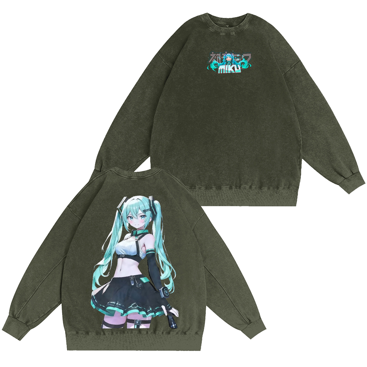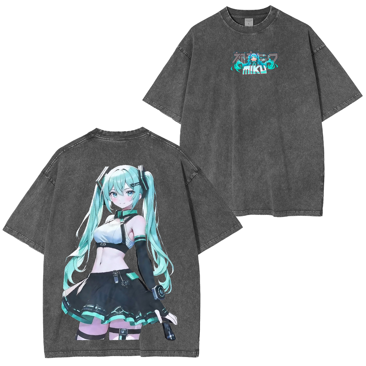 Chainsaw Miku energy on a Dual-sided Unisex Washed T-shirt/Crewneck/Hoodie