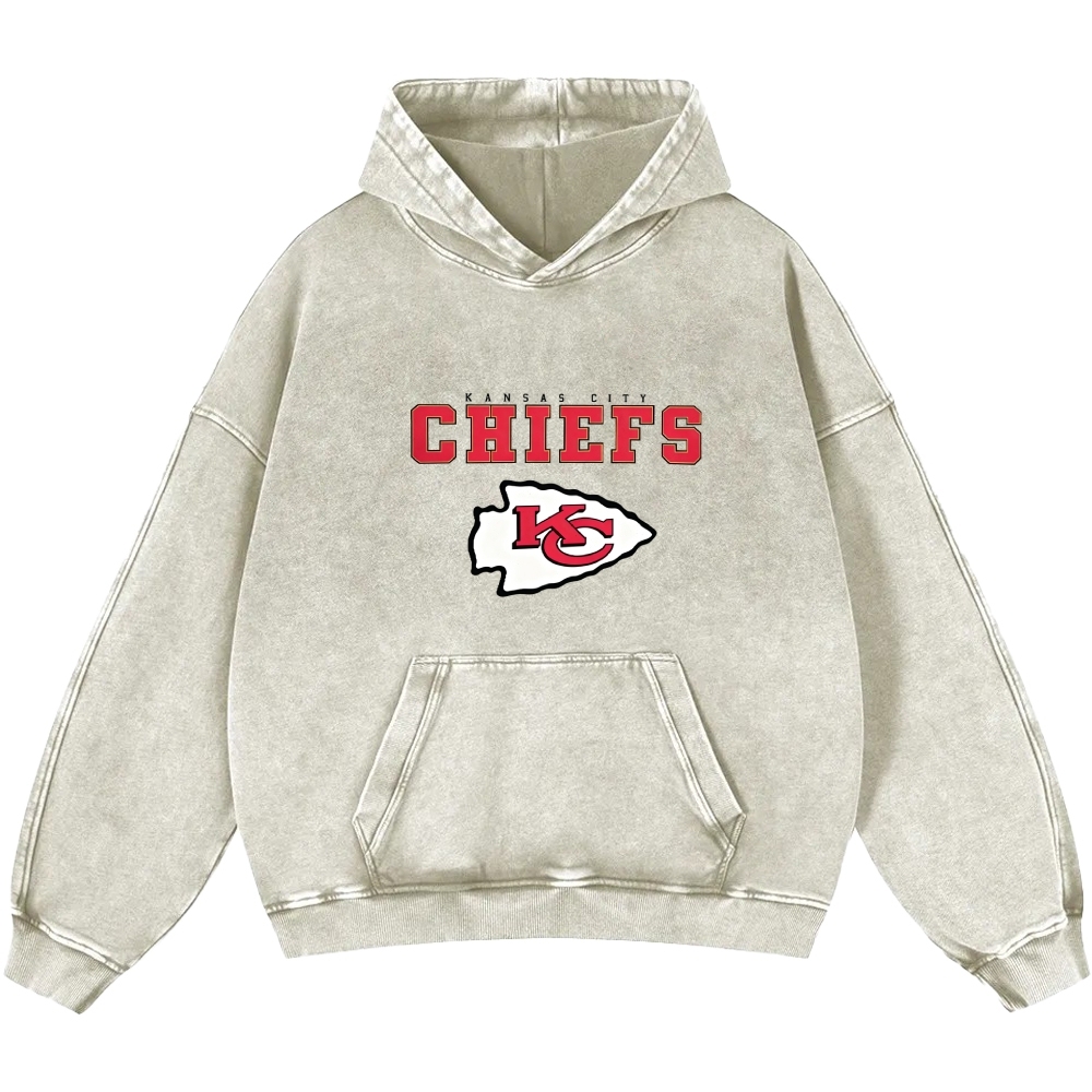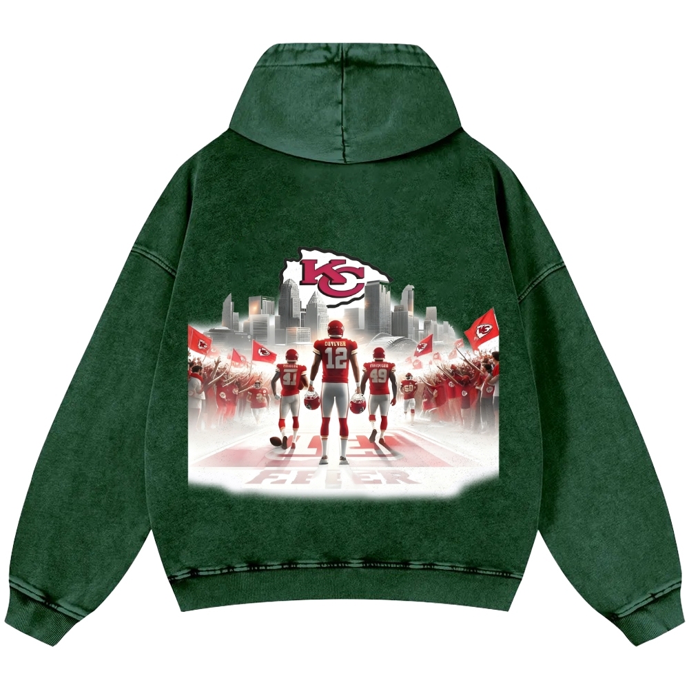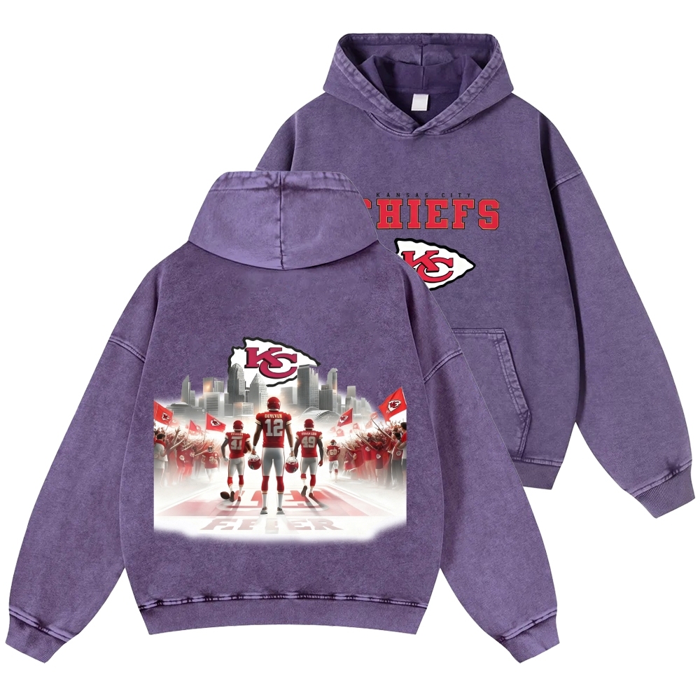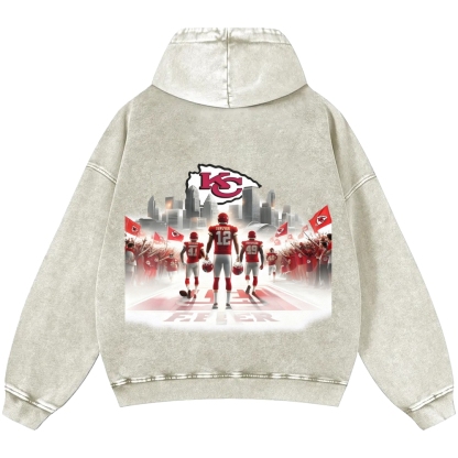 Unisex Kansas City Chiefs Casual Printed Double-sided Washed Hoodie