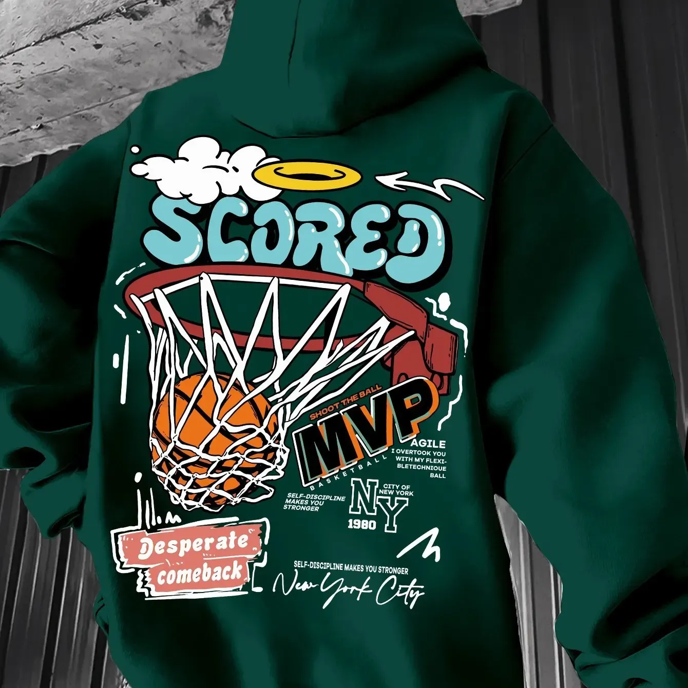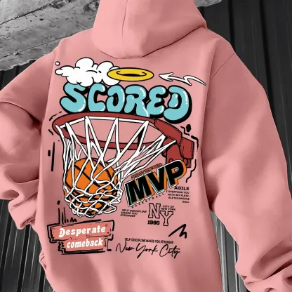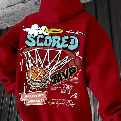 Men's autumn and winter casual fashion loose mvp basketball graphicprint long sleeved hooded sweatshirt warm pullover
